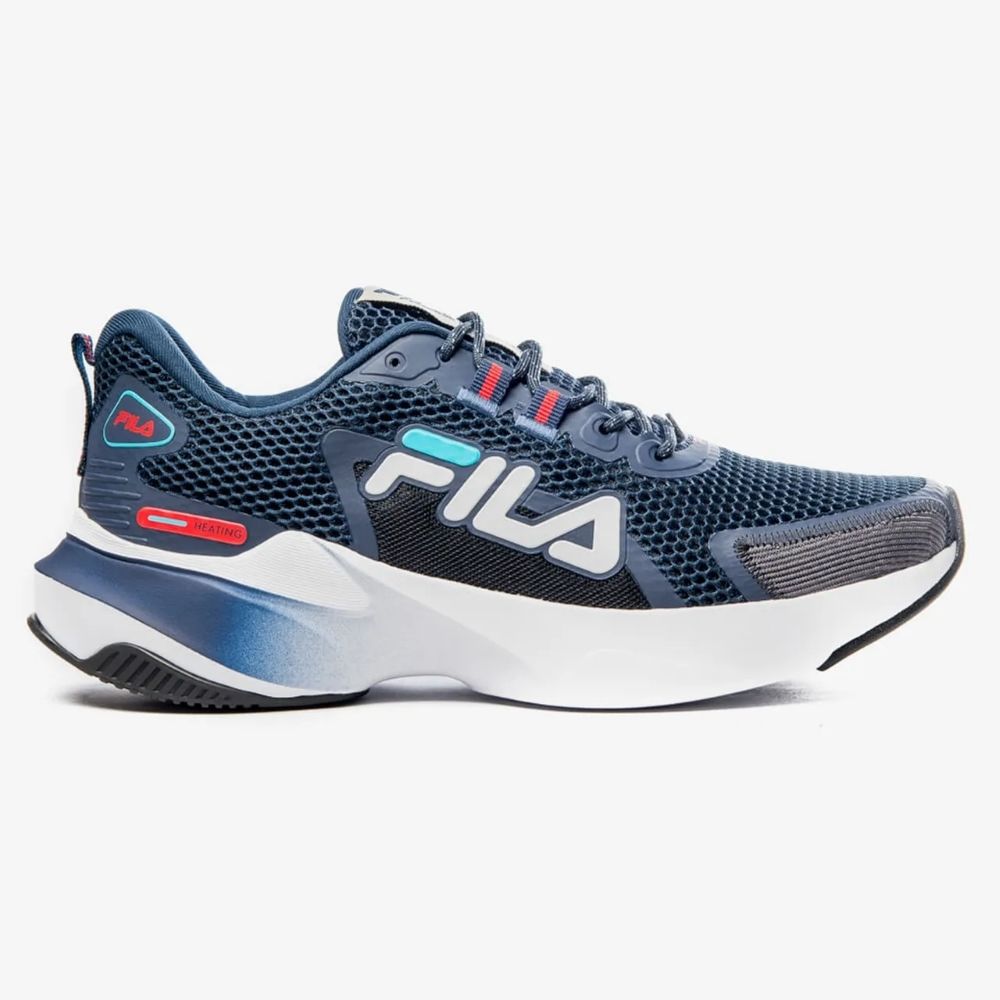 O tênis Fila Heating foi desenvolvido para atender o corredor iniciante em busca de um calçado macio e confortável. Ele possui entressola em ENERGIZED PLUS com linhas inspiradas no modelo FLOAT FLY. Ela possui também pontos em borracha no calcanhar e no bico para garantir maior segurança de tração em superfícies secas e molhadas. Seu cabedal é construído em mescla de tecido MESH respirável e tela de tecido, além de possuir duas fitas que tem maior ajuste na amarração. A lingueta conta com fita personalizada.
