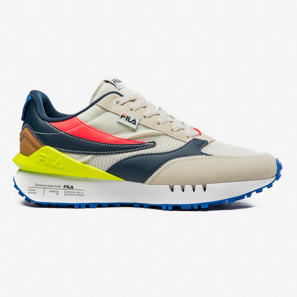 O tênis Fila Renno Vintage, inspirado no modelo Renno Generation da linha HERITAGE, traz um visual perfeito para os looks casuais. Seu cabedal é construído por diversas peças e materiais. Ele possui 3 estilos de tecidos mesh, camurça e material sintético Sumatra. As peças costuradas e sobrepostas trazem muito estilo e modernidade para a peça. Seu solado é construído em EVA macio. Ele possui também placa estabilizadora na parte traseira e uma soleta de TPU emborrachado.