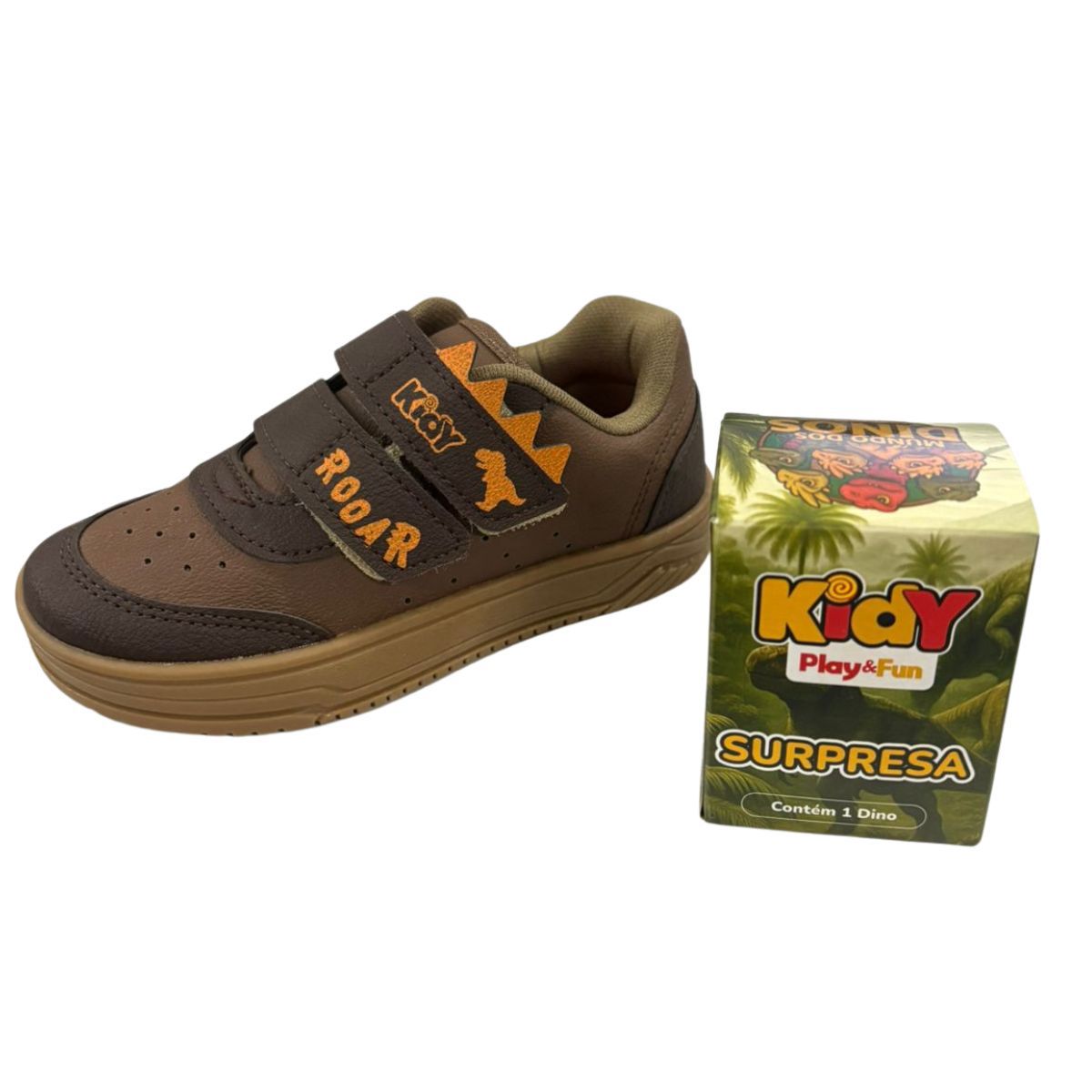 Tênis Kidy Happy Café Castanho + Dino Surpresa Colecionável